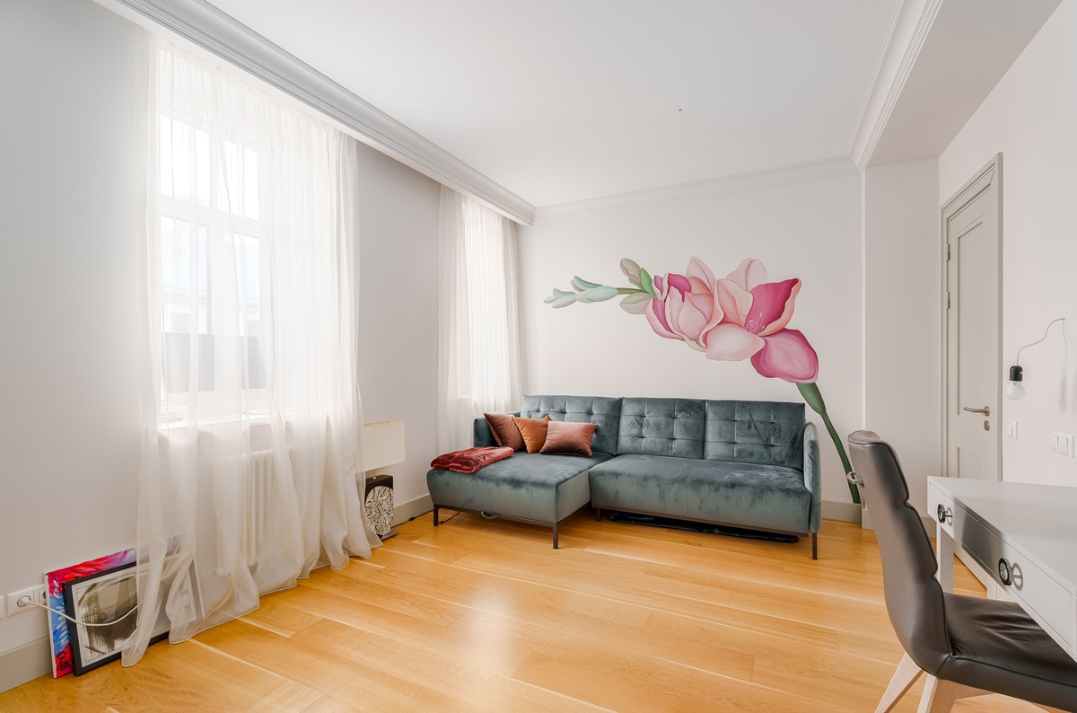 The house at Antonijas street 26, Riga was built in 1913 according to the project of architect Jānis Alkšņas. After extensive restoration and reconstruction works, apartments have been created in this building. The building has a quiet and fast elevator, an intercom. The layout of the apartment is comfortable and practical – an entrance hall, a spacious living room with a kitchen area, a bedroom with a view of the street, another bedroom with a view of the well-maintained courtyard of the house, two bathrooms.
