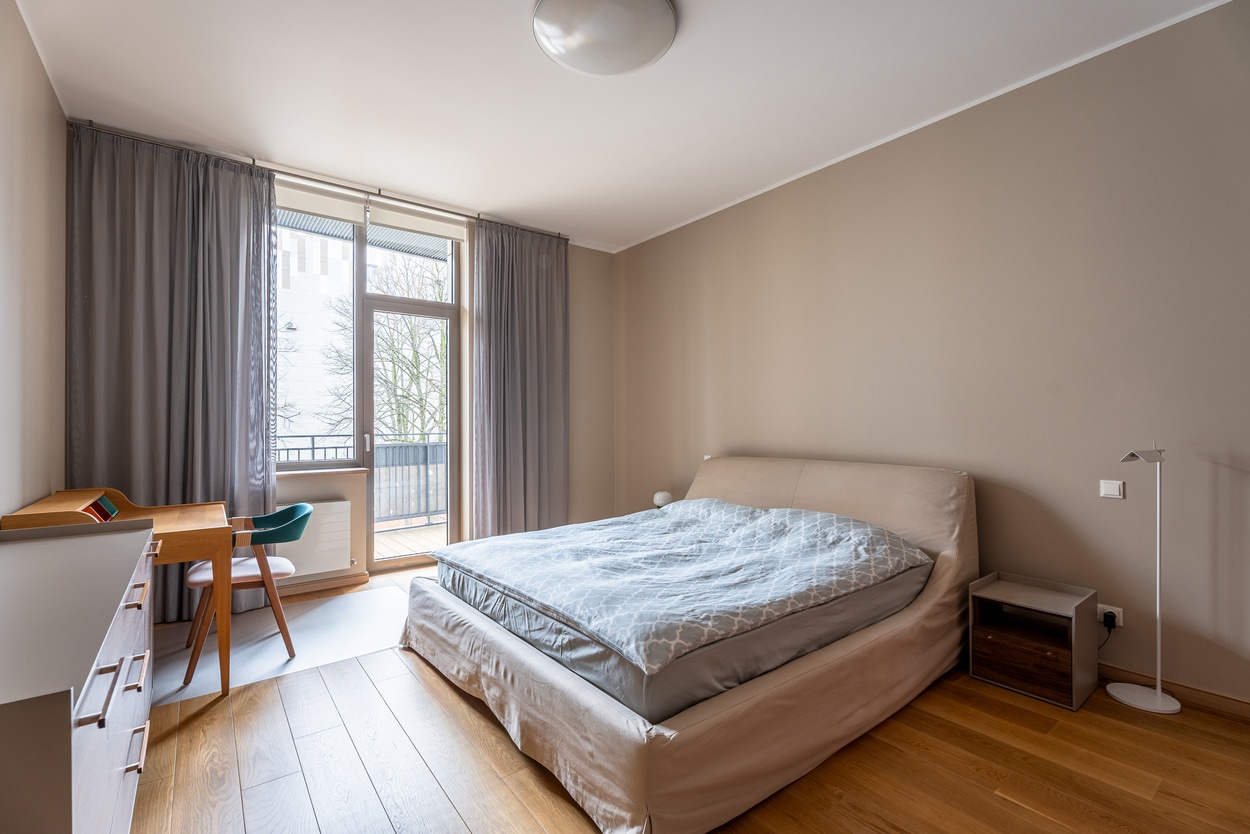 The apartment is located in a highly sought-after residential area on Miera Street, next to the Rīga French Lyceum, the Rimi Olympic Center and the New Rīga Theater, and there is also a park nearby for sports or walks. Quiet center of Riga, only about 15 minutes’ walk away.