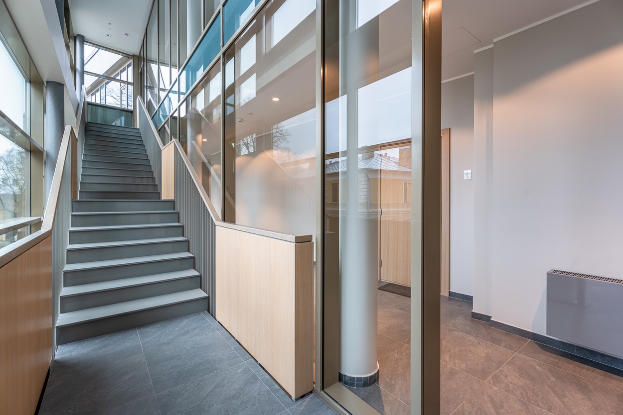 The building has a convenient high-speed elevator, the stairwell is designed and realized as a bright space with many windows for elegant solutions made of quality materials.