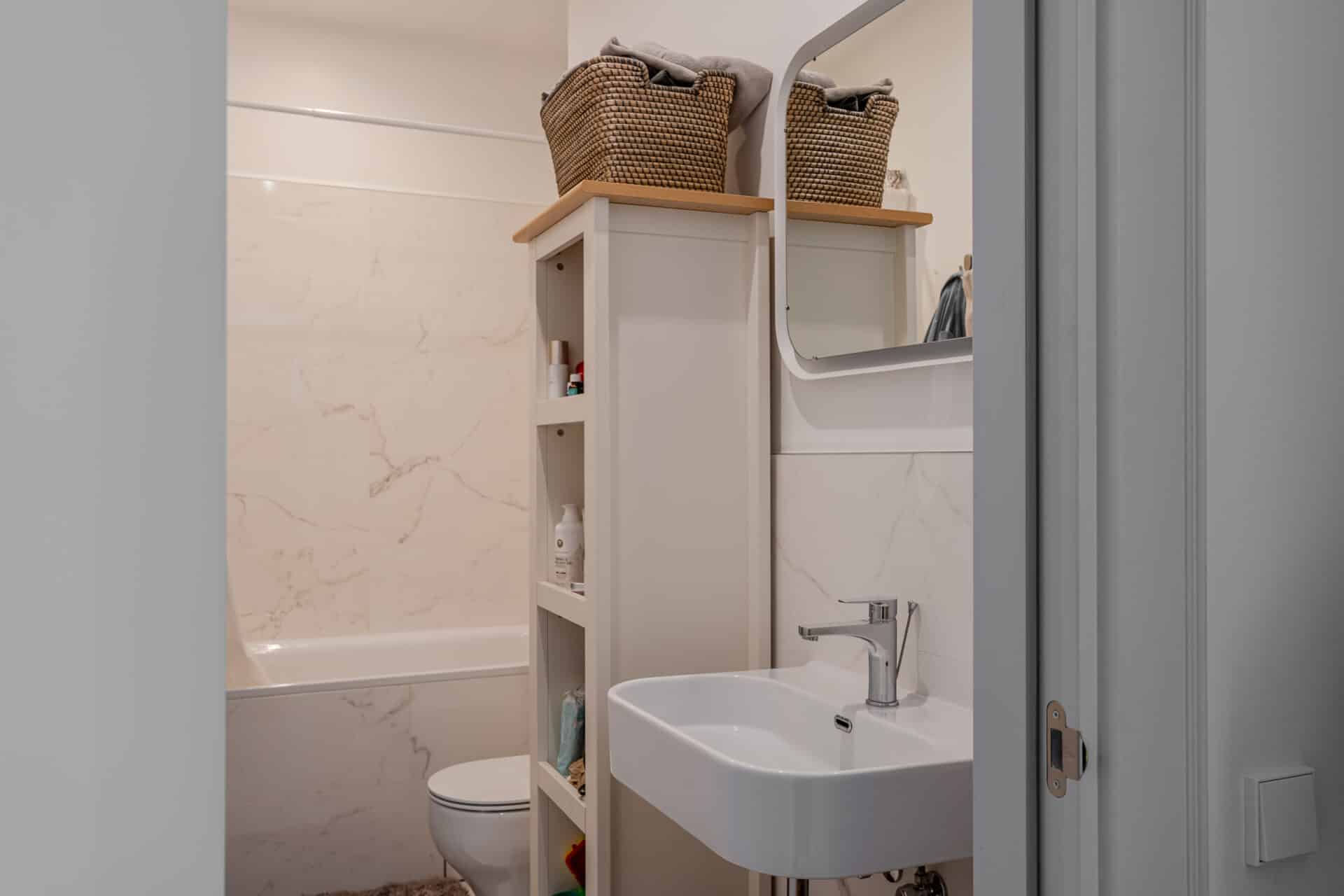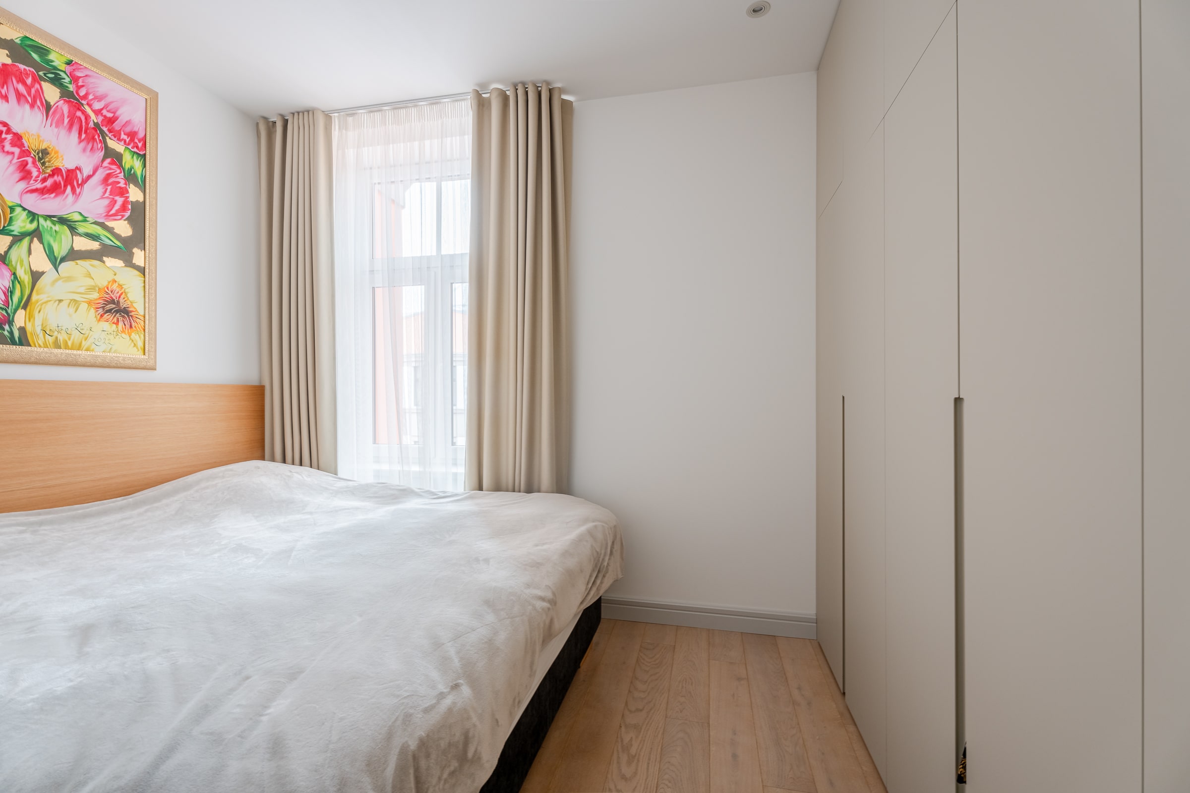 The well furnished apartment is located on the 6th floor of the facade of the house and is offered with all amenities – built-in and removable furniture.