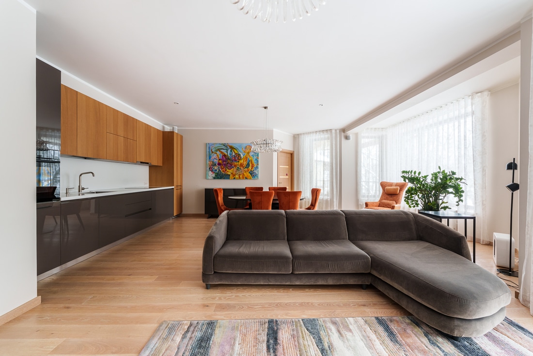 The apartment has undergone a cosmetic renovation using high-quality and natural finishing materials.