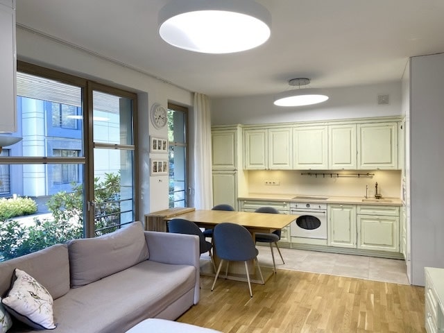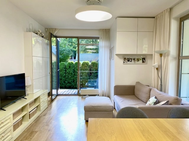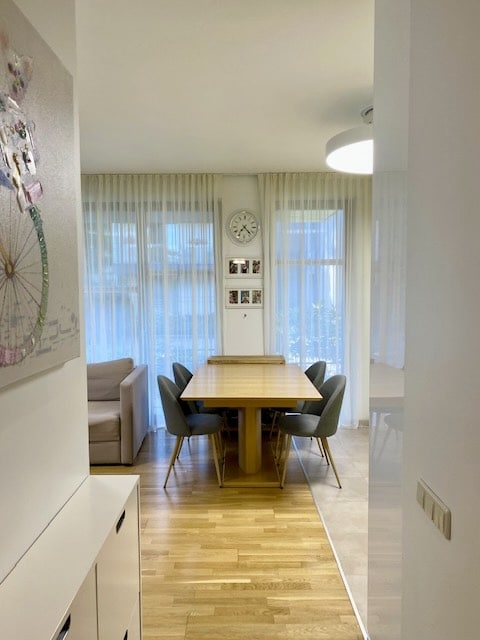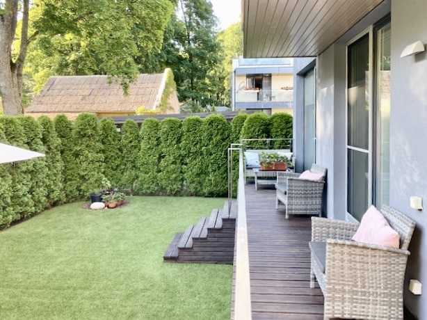 Next to the dune area in Dubulti, a 3-room apartment is for sale. The area of the apartment is 70.1 m2, including an outdoor terrace of 9.8 m2. According to the plan, the apartment has a spacious living room, 2 bedrooms, 2 sanitary facilities and an outdoor terrace. As an additional bonus, there is a plot of land – 77 m2. The residential house is located next to the dune area, you will be on the beach in less than a minute after going through the gate. All necessary city infrastructure is nearby – shops, cafes, restaurant “36 lijnia”, SPA Kursi, polyclinic, kindergarten. Convenient transportation, Dubulti railway station and public transport are nearby. 1 parking space in the closed courtyard, included in the price of the apartment.