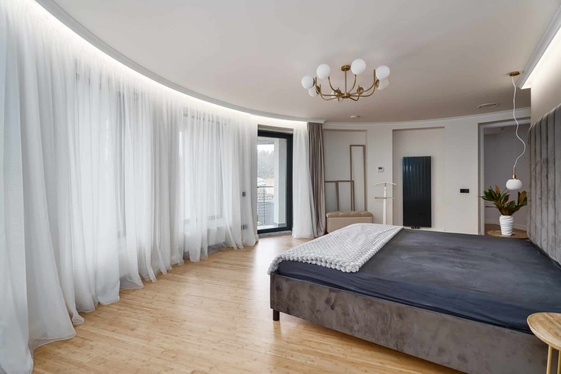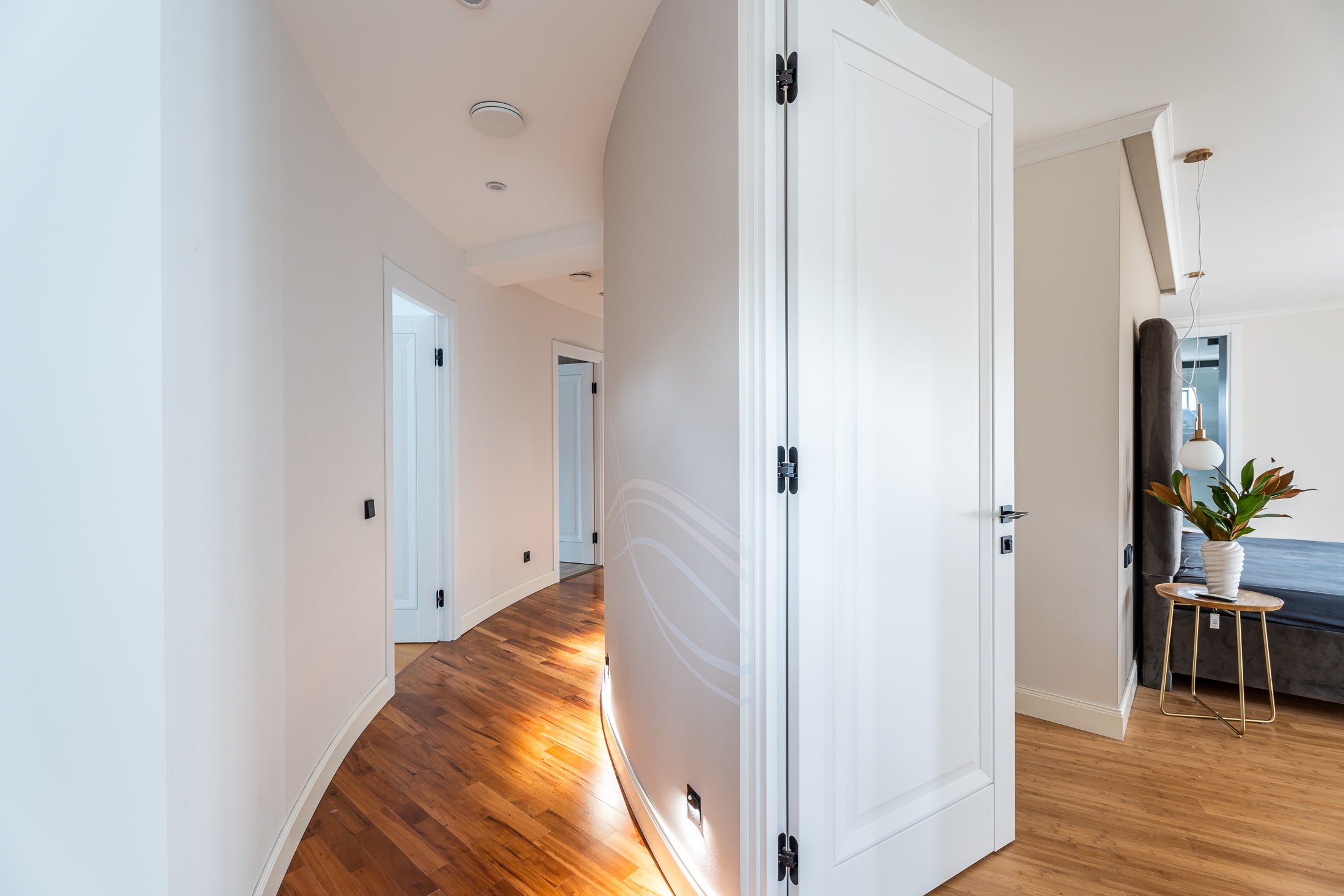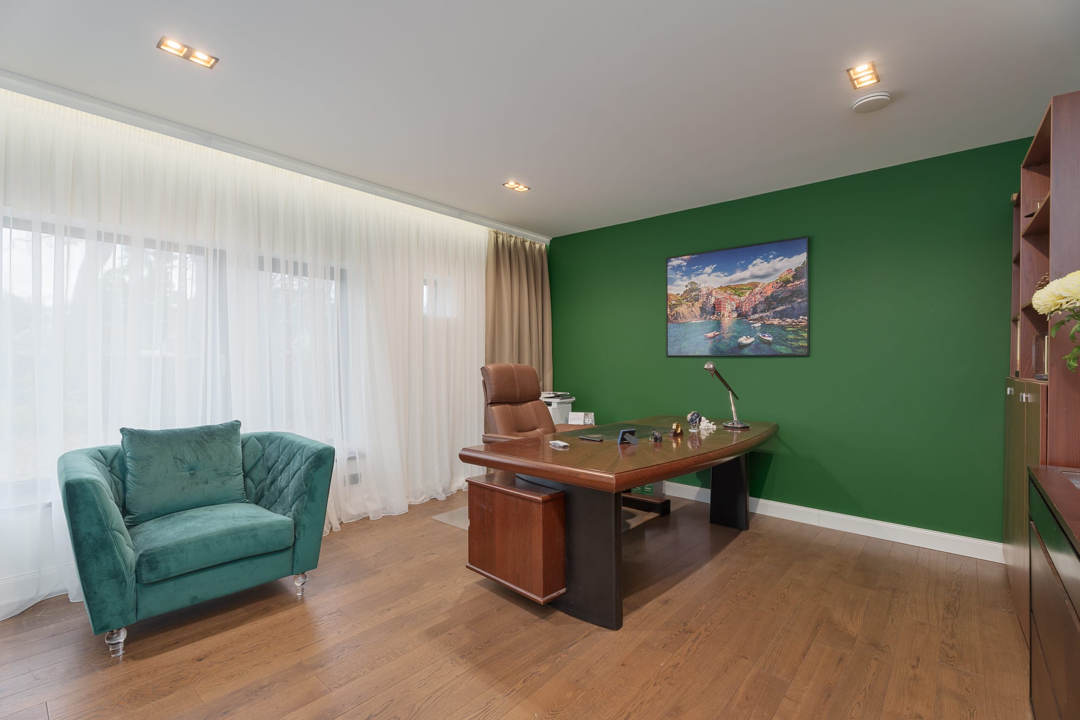 On the second floor: three bedrooms. The master bedroom has panoramic windows with a charming view of the river, a separate bathroom and a walk-in wardrobe.