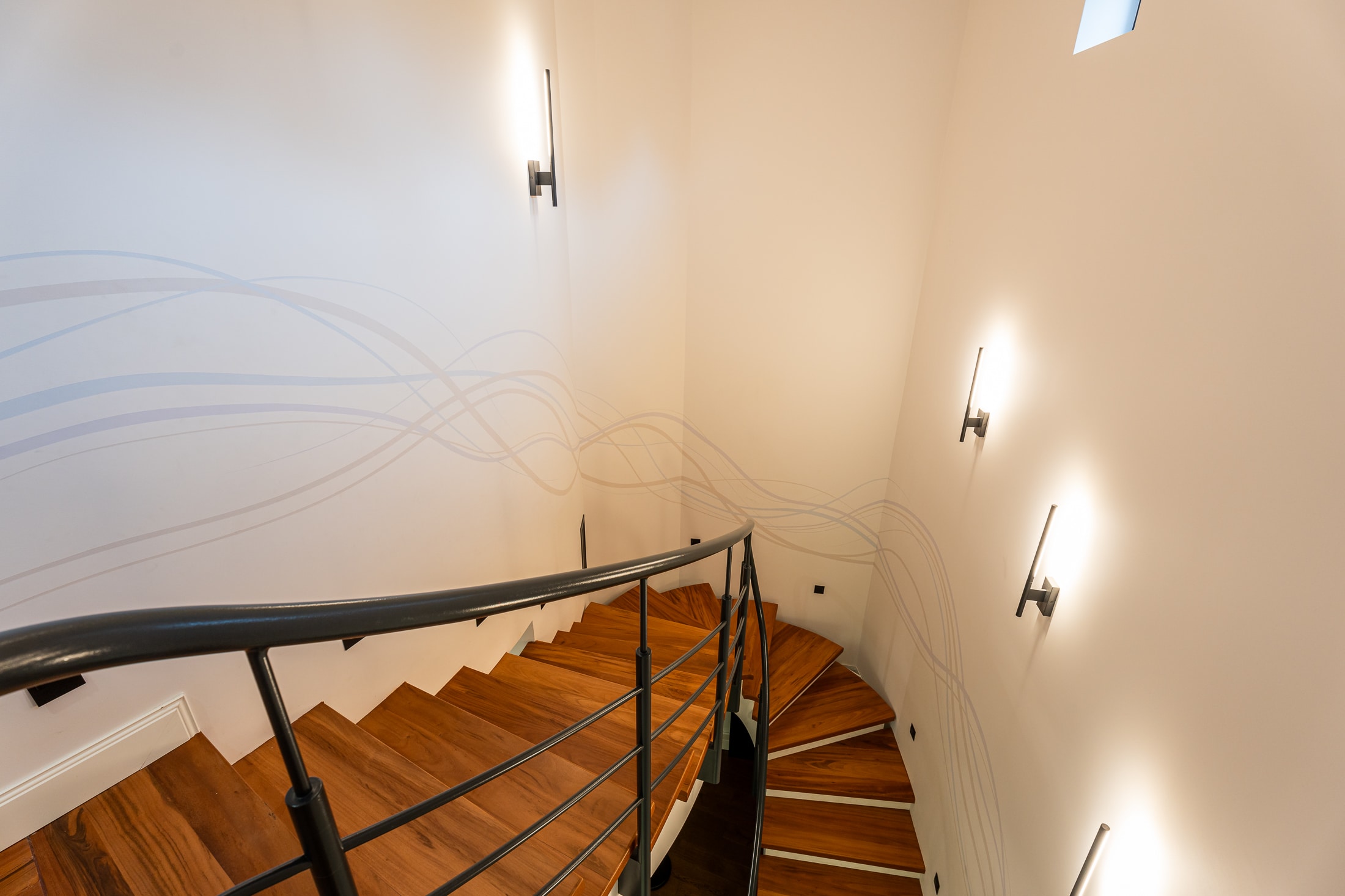 On the first floor: a spacious and equipped kitchen with all the necessary appliances, a dining area and a lounge equipped with a modern sound system and a home video room. A spacious utility room with laundry room and wardrobe. In addition, a tastefully decorated cabinet. Heated floors and fireplace.