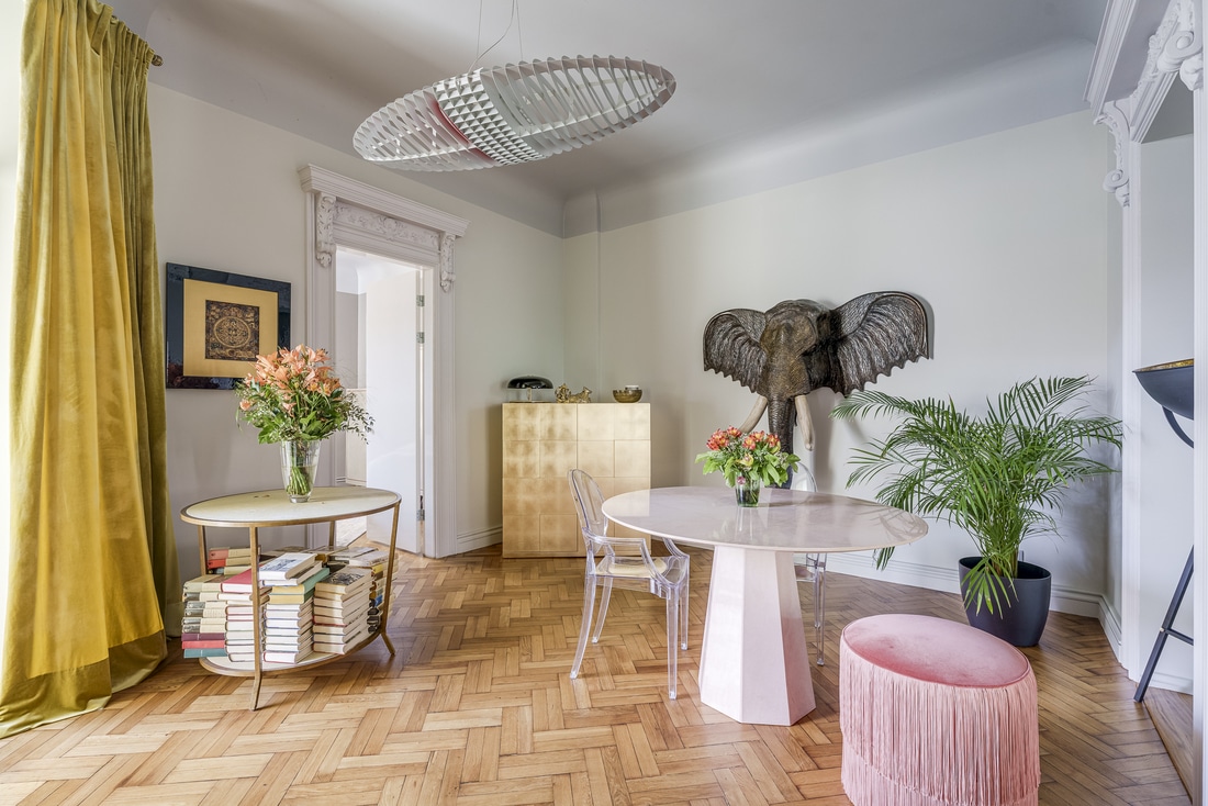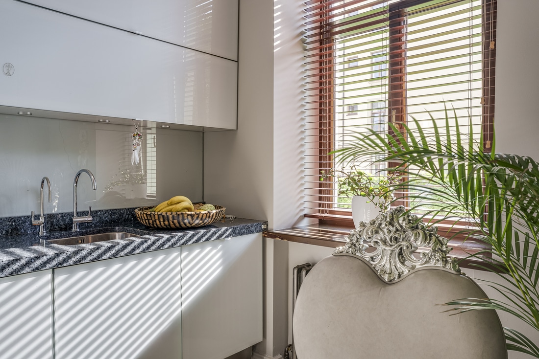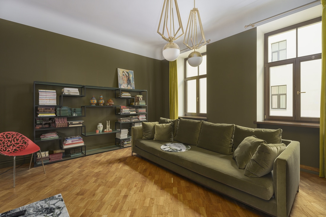 The apartment is decorated according to the principle of golden proportions or Golden Ratio, there is an entrance hall with a wonderful seating area, a separate kitchen area, a living room, a guest bedroom, a master bedroom and a bathroom. The interior uses exclusive and high-quality finishing materials, combining elements of the classic style with modern elegance, as well as respecting the golden proportion called Golden Ratio. There is a possibility to rent a parking space in the courtyard.