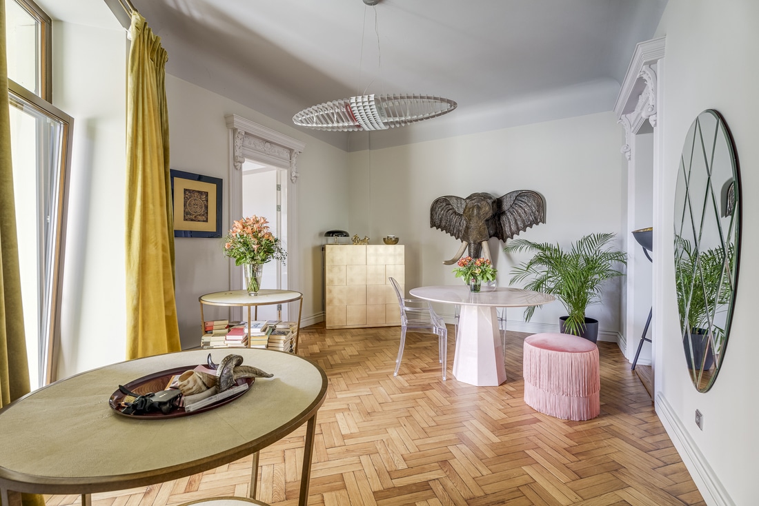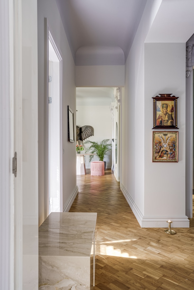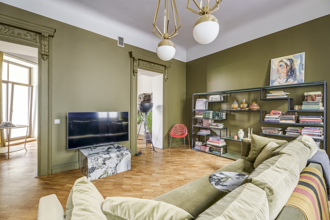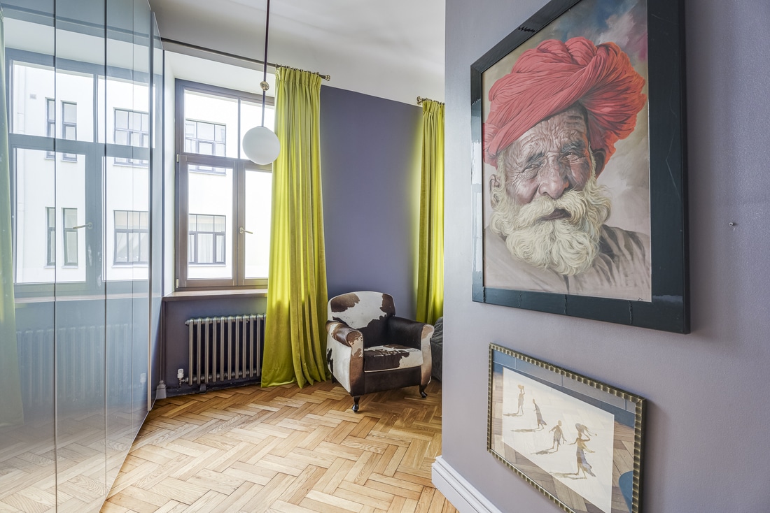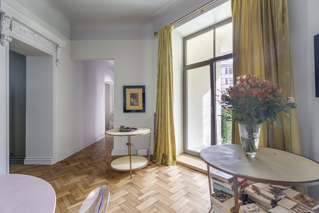 We offer to buy an elegant, interesting and bright apartment in the one of the tallest buildings in the center of Riga – on the corner of Skolas Street and Lāčplēša Street. The historic Art Nouveau building was built in 1907 and is an architectural monument.