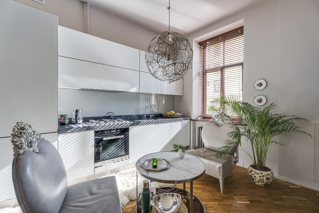 The apartment is located on the 2nd floor of a renovated courtyard building. The safety of the owners of apartments is ensured by live security in the main staircase and video cameras.