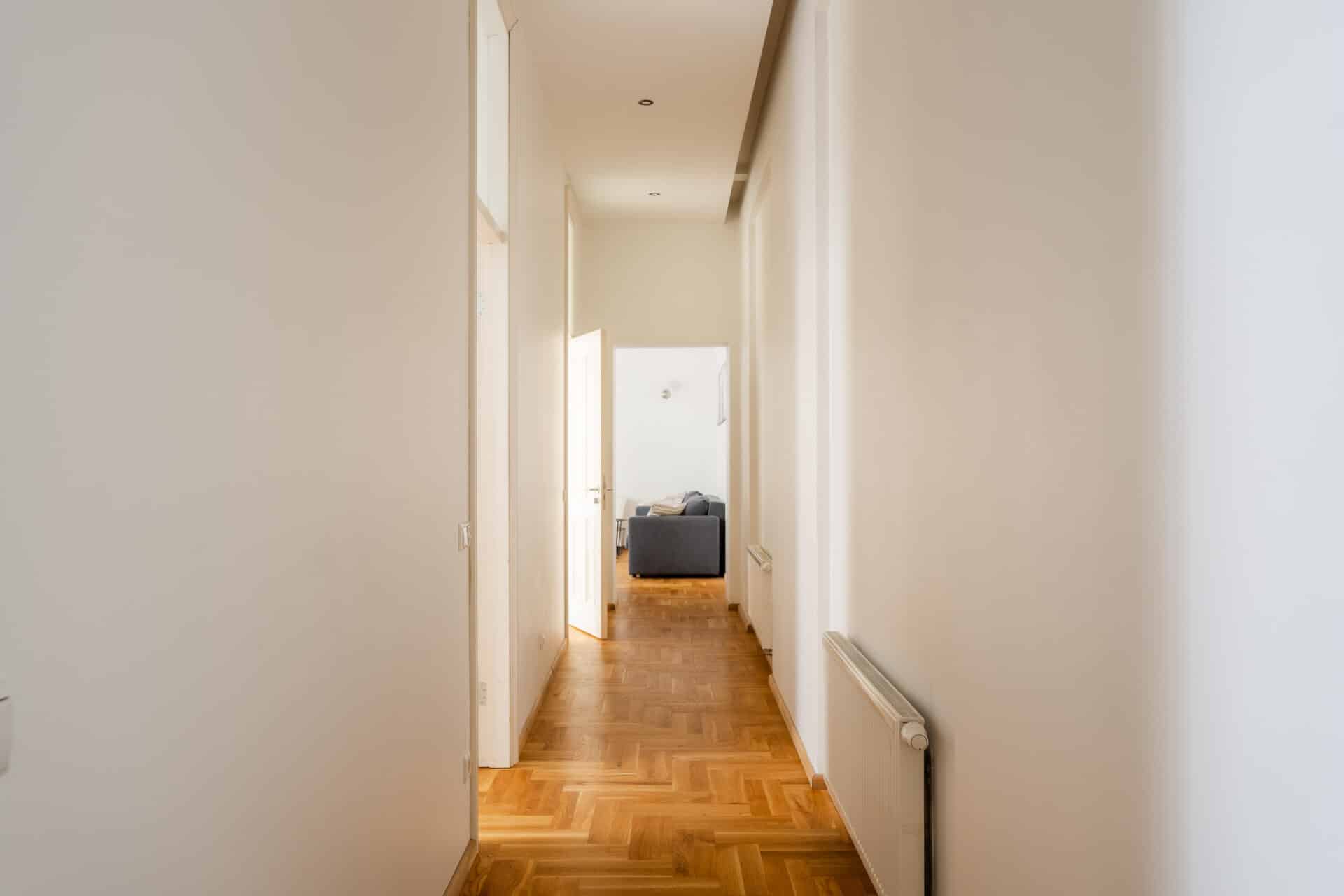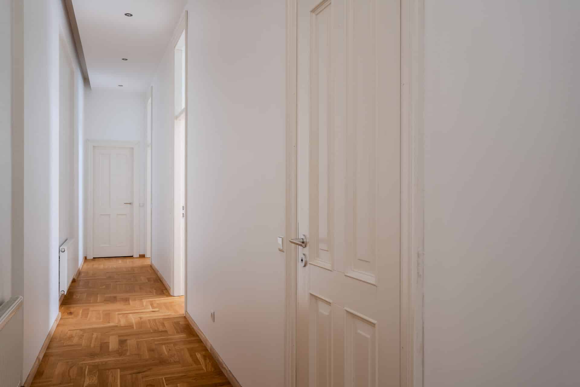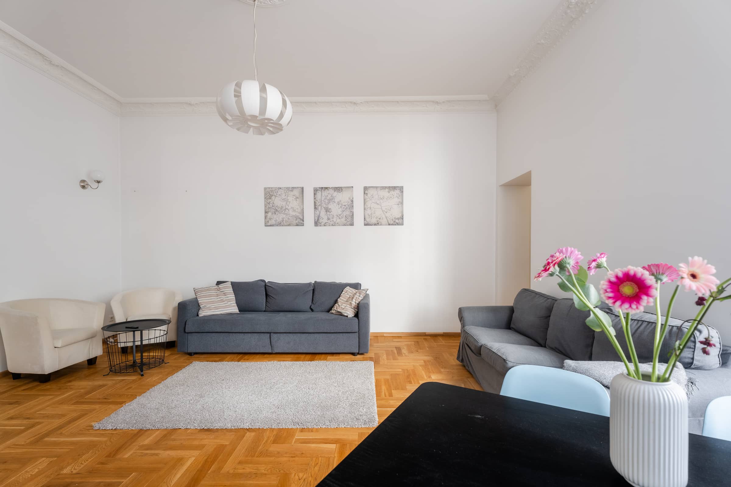 Welcome to Valdemāra Street 23, an impeccable 2-bedroom, 1-bathroom apartment nestled in a fully reconstructed building in the heart of Riga. This charming residence features a spacious walk-in closet and comes fully furnished, offering a move-in-ready experience. Enjoy the elegant living area with beautiful herringbone parquet floors and high ceilings adorned with intricate moldings. The modern kitchen, complete with sleek cabinetry and high-end appliances, flows seamlessly into the dining area. The bathroom boasts contemporary fixtures and a spacious walk-in shower. The building seamlessly blends modern comforts with historical elegance, making it a unique find in the city.