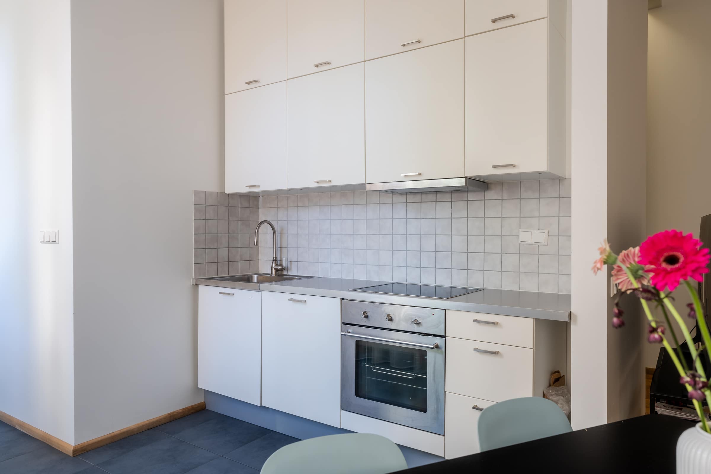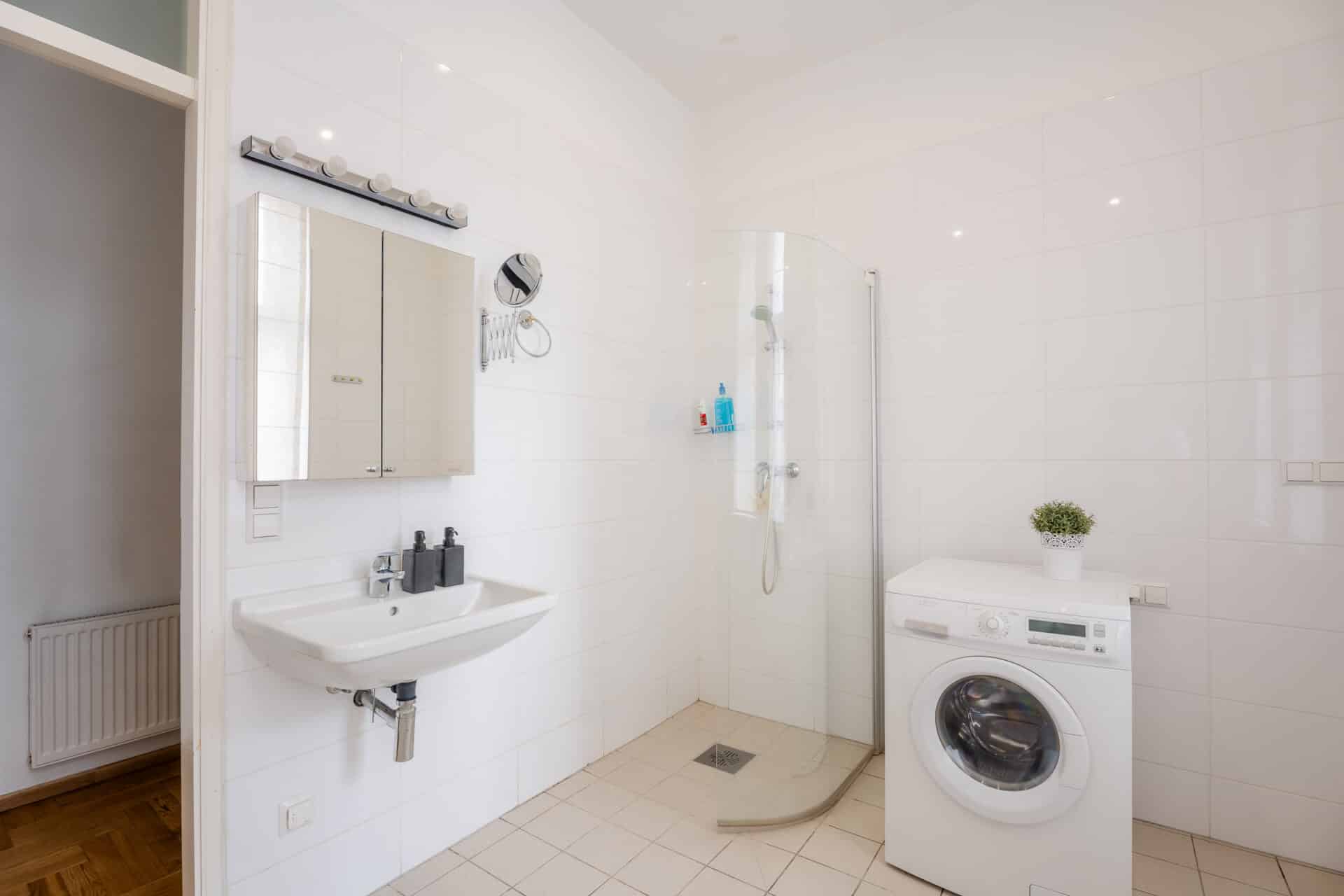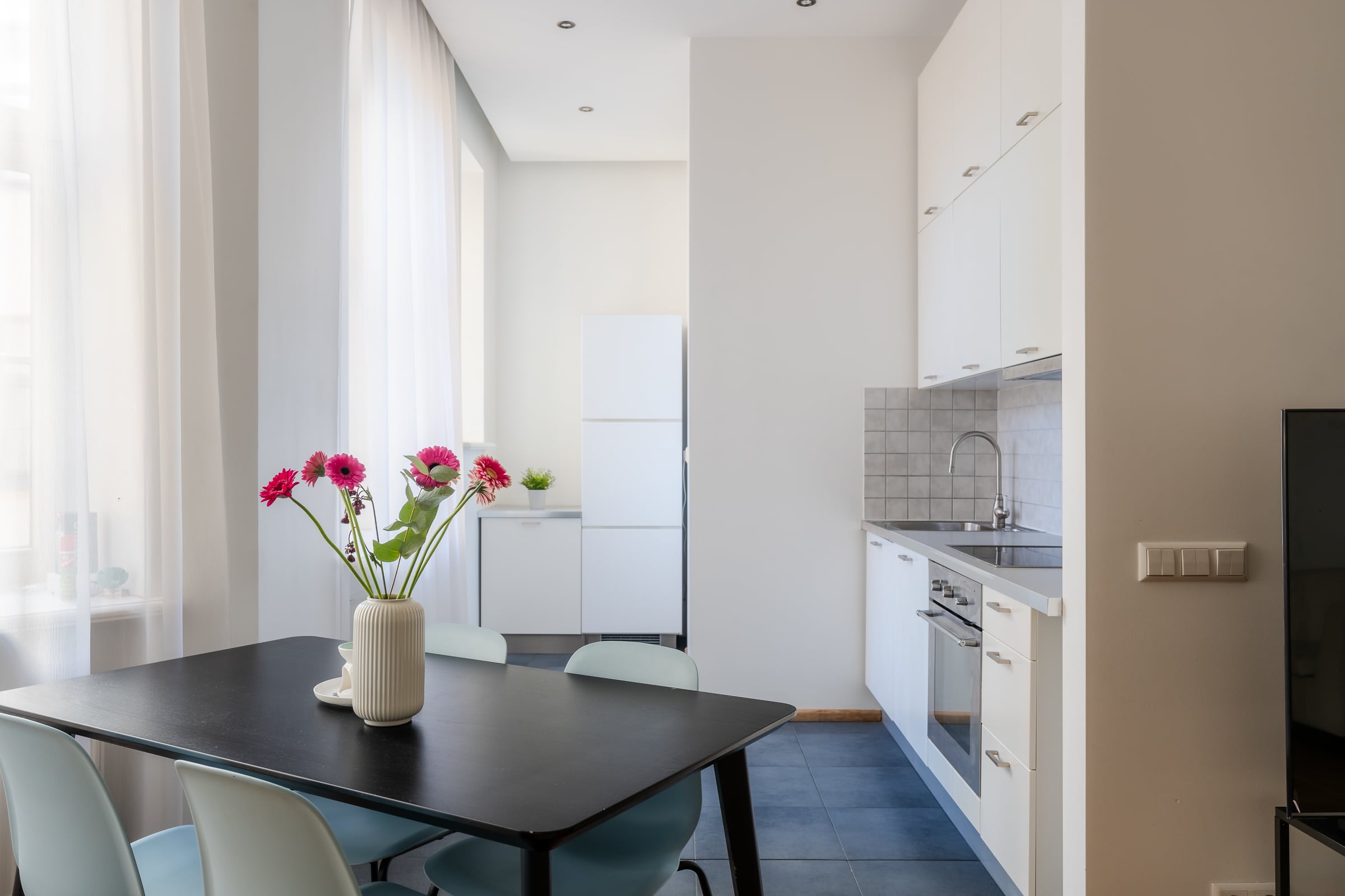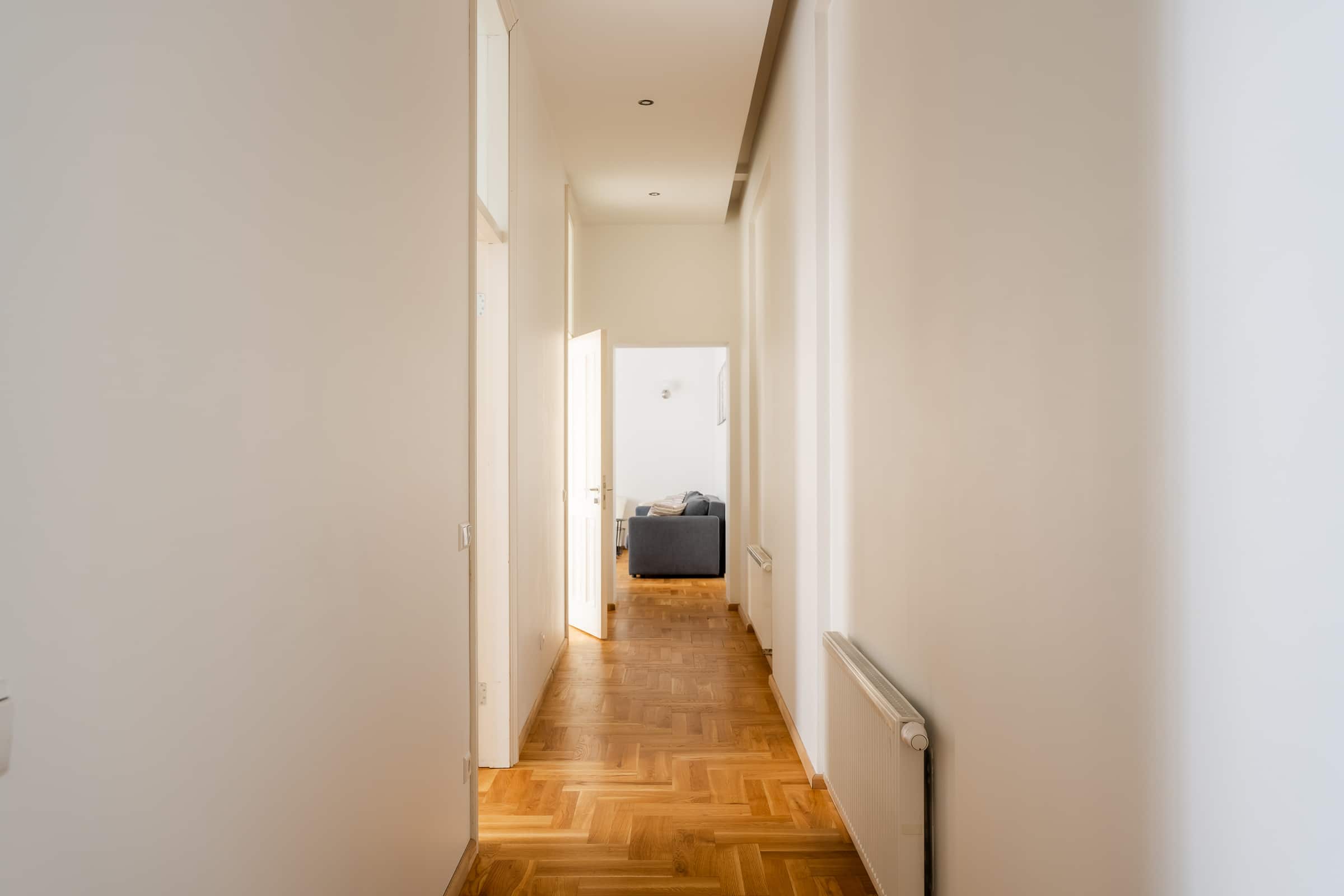 Welcome to Valdemāra Street 23, an impeccable 2-bedroom, 1-bathroom apartment nestled in a fully reconstructed building in the heart of Riga. This charming residence features a spacious walk-in closet and comes fully furnished, offering a move-in-ready experience. Enjoy the elegant living area with beautiful herringbone parquet floors and high ceilings adorned with intricate moldings. The modern kitchen, complete with sleek cabinetry and high-end appliances, flows seamlessly into the dining area. The bathroom boasts contemporary fixtures and a spacious walk-in shower. The building seamlessly blends modern comforts with historical elegance, making it a unique find in the city.